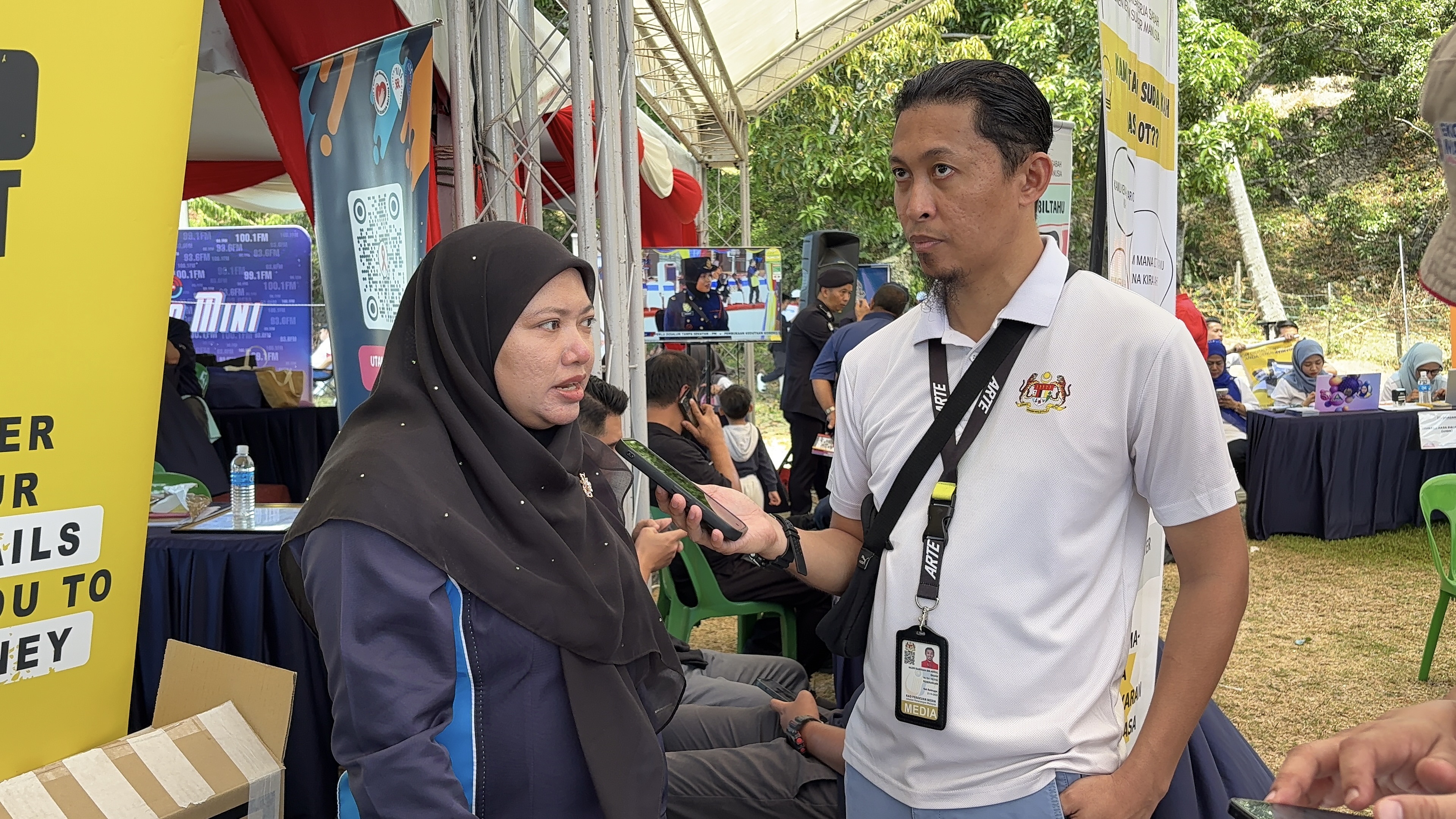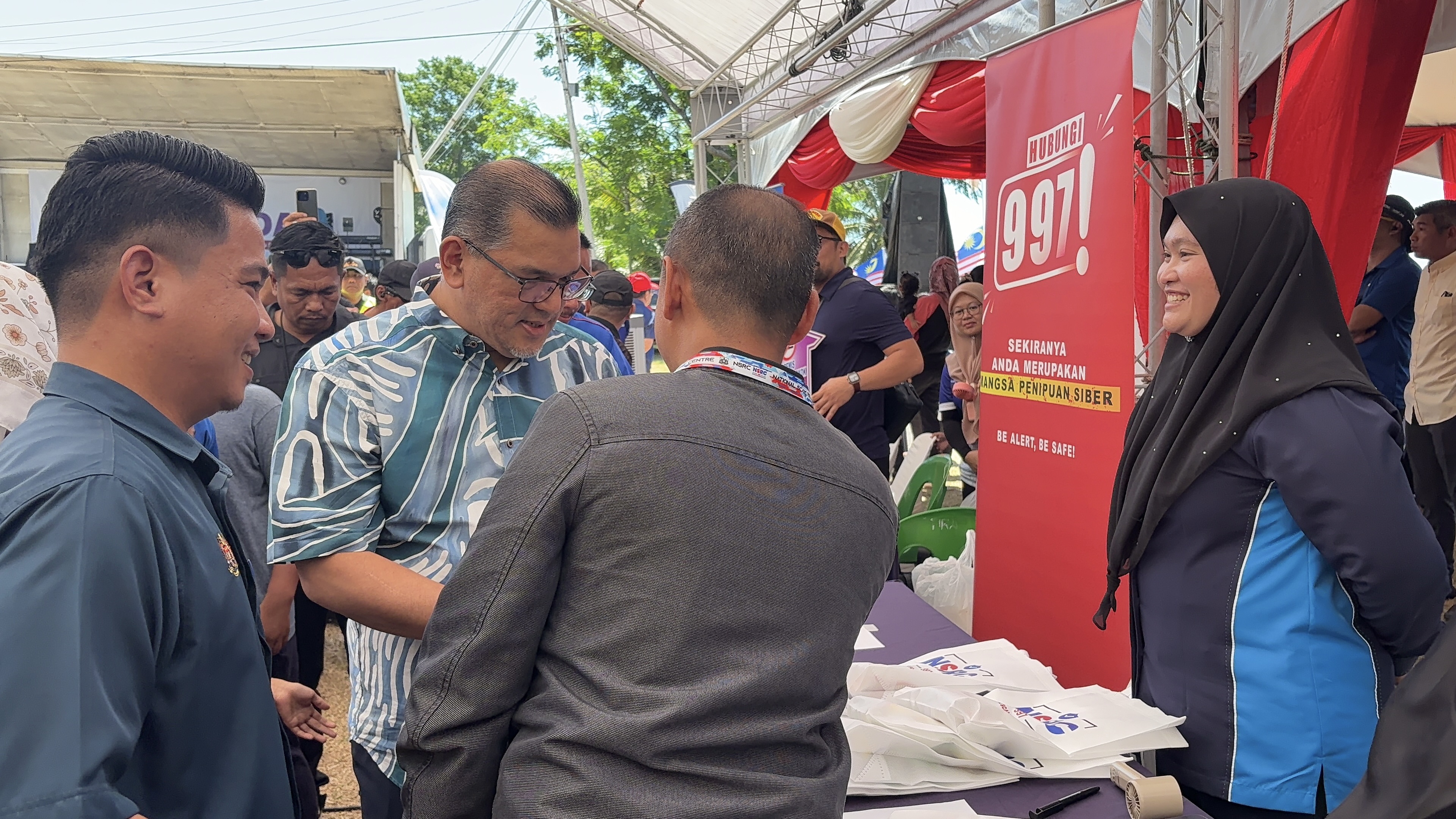 Sabah, 4 May – The Satellite Program: Kita Madani Carnival X Madani Rakyat Program (PMR) and the State-Level Kita Madani Carnival was held at Padang Kampung Batu Payung, Tawau, on Sunday, 4 May 2025. The event was coordinated by the Department of Information Malaysia (JAPEN), which invited the National Financial Crime Prevention Centre (NFCC) as an exhibitor, representing the National Scam Response Centre (NSRC).